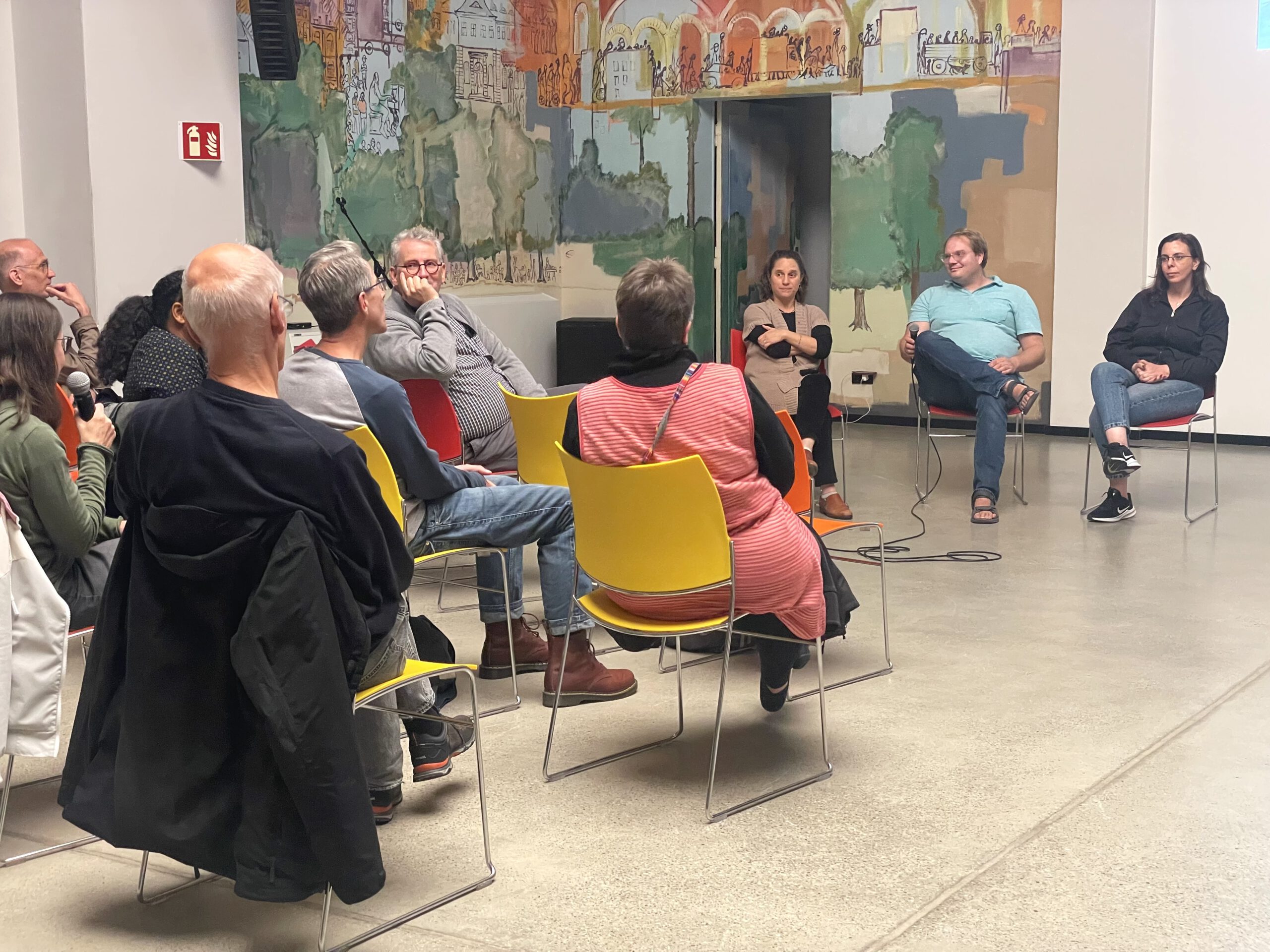 David Lapp Jost, zuständig für die Israel-Palästina-Arbeit beim Deutschen Mennonitischen Friedenskomitee (DMFK), wies am Ende des Abends auf eine Crowdfunding-Kampagne und Petition hin, mit der die Arbeit von Comet-ME unterstützt werden kann. Das DMFK hat Comet-ME in diesem Jahr mit dem Michael-Sattler-Friedenspreis ausgezeichnet.